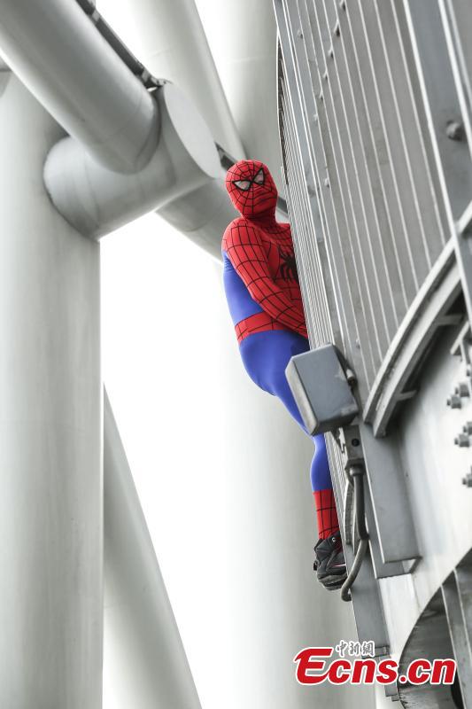 Huang Yongyu, dressed like Spiderman, collects signatures in support of him proposing to his girlfriend in Guangzhou city, capital of South China’s Guangdong province, May 20, 2015. Huang met his girlfriend, who goes by the user name Mary, on a dating app six months ago and decided to pop the big question on May 20, a contemporary local Valentine's Day chosen mainly for its phonetic similarities to the Chinese for "I love you". Huang wanted to collect 520 signatures to support his decision. (Photo: China News Service/Shi Yong)