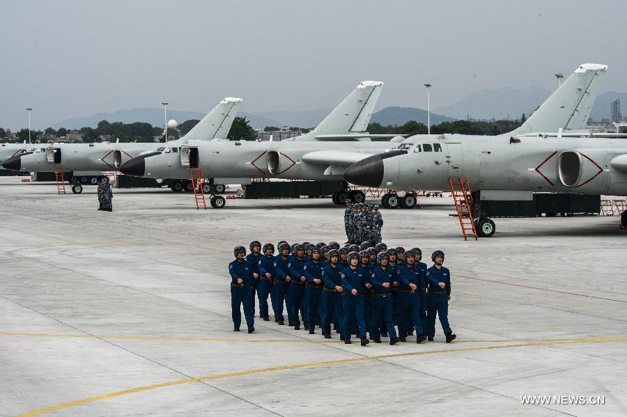 File photo shows soldiers of the People's Liberation Army (PLA) Air Force participating in a training. Aircraft of the People's Liberation Army (PLA) Air Force flew over the Miyako Strait for the first time on May 21, 2015 for training in western Pacific, a military spokesperson said. (Xinhua/Zhang Haishen) |