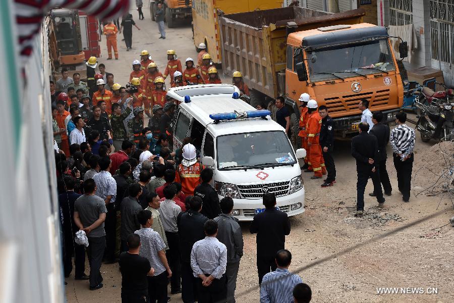 LINXIAN, Shanxi, May 20 -- Seven people have been confirmed dead, and two others were rescued 21 hours after a landslide on a loess hill buried four farmers' houses in north China's Shanxi Province Tuesday evening.