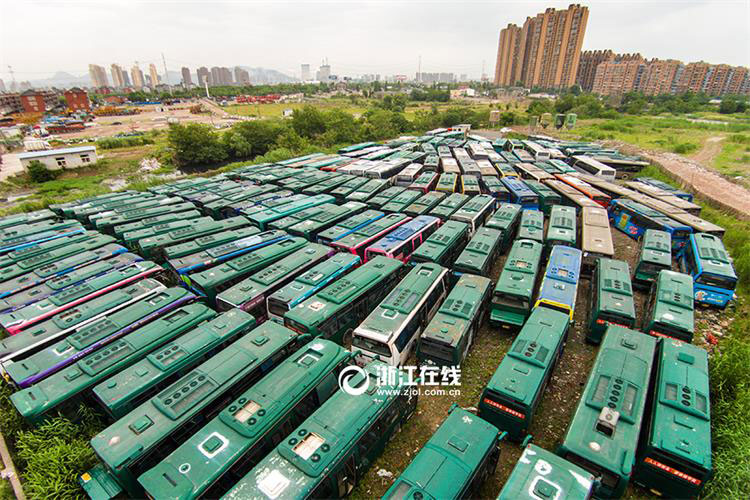 Hundreds of buses discarded in the outskirts of Hangzhou.(Photo/zjol.com.cn)