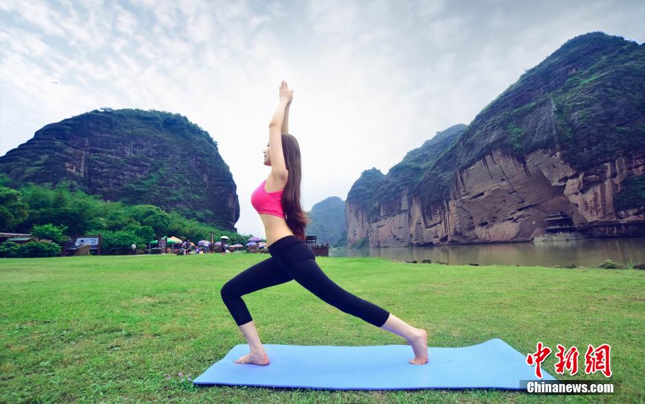 Campus belle performs Yoga in Longhu Mountain (4)