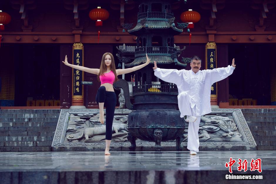 Fu Jiamei, the campus belle of Beijing Sport University, learned to do tai chi from a Taoist priest, and performed Yoga in the Longhu Mountain, east China's Jiangxi province on May 19, 2015.