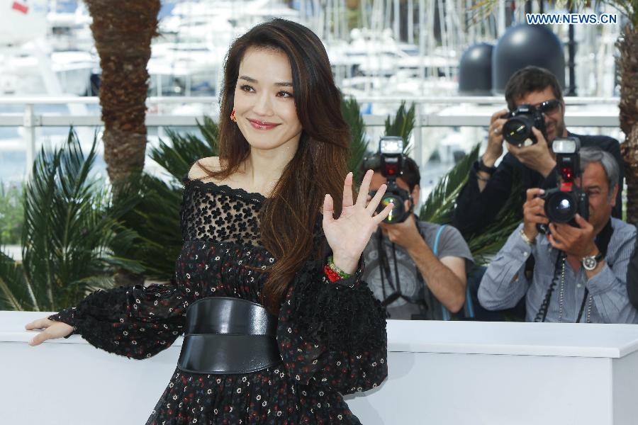Cast member of the film "Nie Yinniang" (the Assassin) Shu Qi poses for photos at the photocall during the 68th Cannes Film Festival in Cannes, France, on May 21, 2015. The film "Nie Yinniang" (the Assassin) would premiere at the 68th Cannes Film Festival on Thursday. (Xinhua/Zhou Lei)