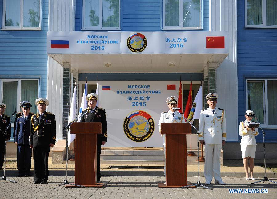 Photo taken on May 21, 2015 shows the closing ceremony of the joint naval exercises in Novorossiysk, Russia. Chinese and Russian naval forces on Thursday ended their joint military exercises in the Mediterranean, according to an online news briefing from the Chinese Defense Ministry. (Xinhua/Dai Tianfang) |