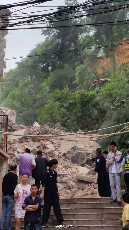 A nine-story building collapses in Guiyang, capital of southwest China's Guizhou Province, on Wednesday. [Photo: weibo.com/CCTV News] |