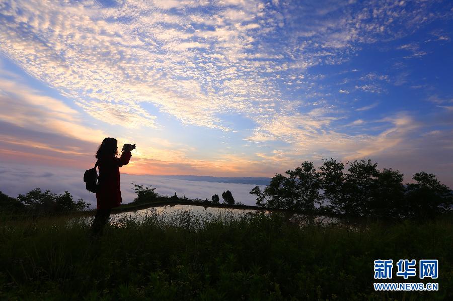 A tourist takes photos on a hill in Kaili, southwest China's Guizhou province, May 19, 2015. Tuesday is China's fifth National Tourism Day. Many scenic spots have taken certain measures and offered discounts to attract more tourists. (Xinhua/Wu Jibin) |