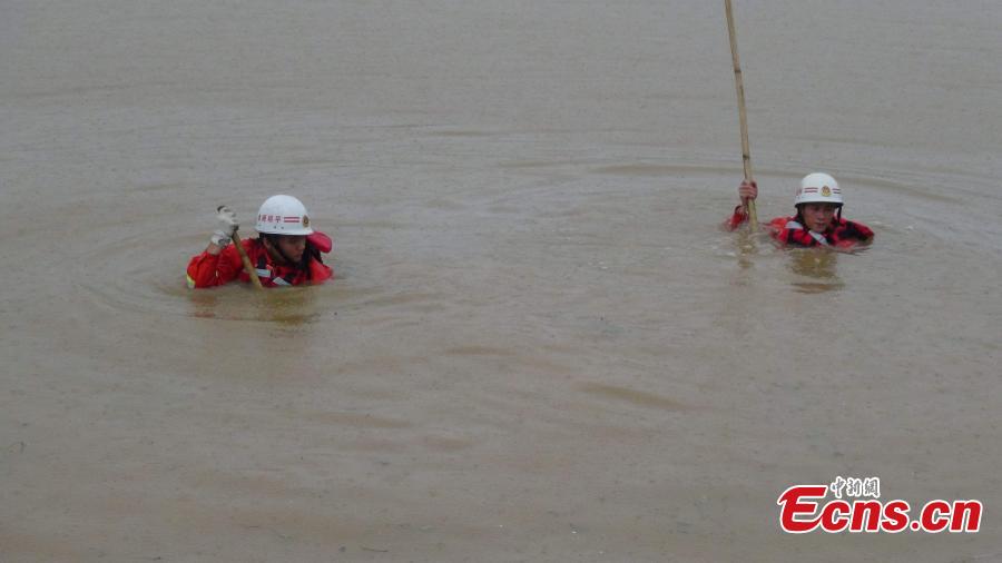 Rescuers lift a school bus out of a pond in Guiping city, Southwest China’s Guangxi Zhuang autonomous region, May 22, 2015. A bus for a kindergarten, carrying 23 children, fell into the pond, leaving two children dead. Rains hit the region recently. The accident is still under investigation. (Photo: China News Service/Wang Shi)