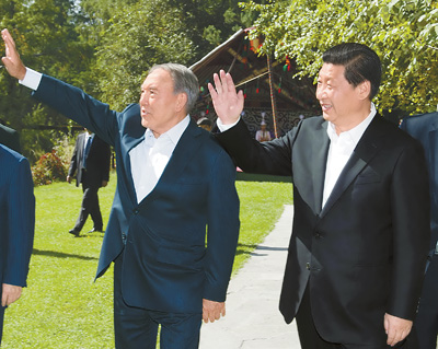 Scene: Accompanied by President Nazarbayev, President Xi Jinping visited the largest city of Kazakhstan Alma-Ata. The two leaders then chose to take a stroll and enjoy performances by the local artists.