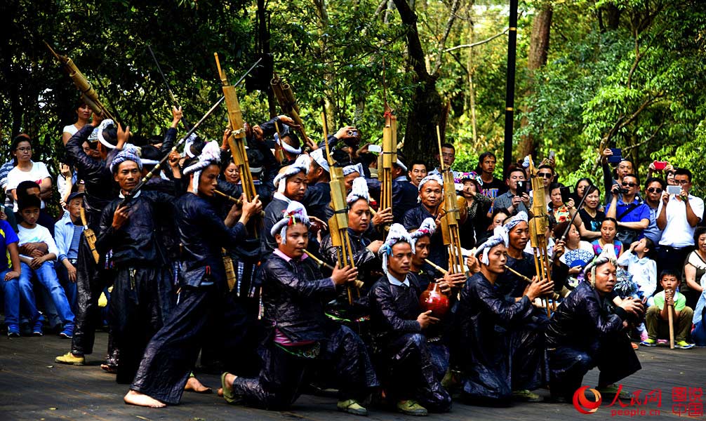 Located in mountain area south of Congjiang county, southwest China’s Guizhou province, Basha Miao village is a remote village that still maintains simple and unsophisticated folkway. With the special approval of the Ministry of Public Security, villagers here can possess guns. With the opening of the expressway and high speed rail that connect Congjiang with other cities, more and more tourists have come to visit this pristine village and watch their traditional dance. (Photo source: people.cn)