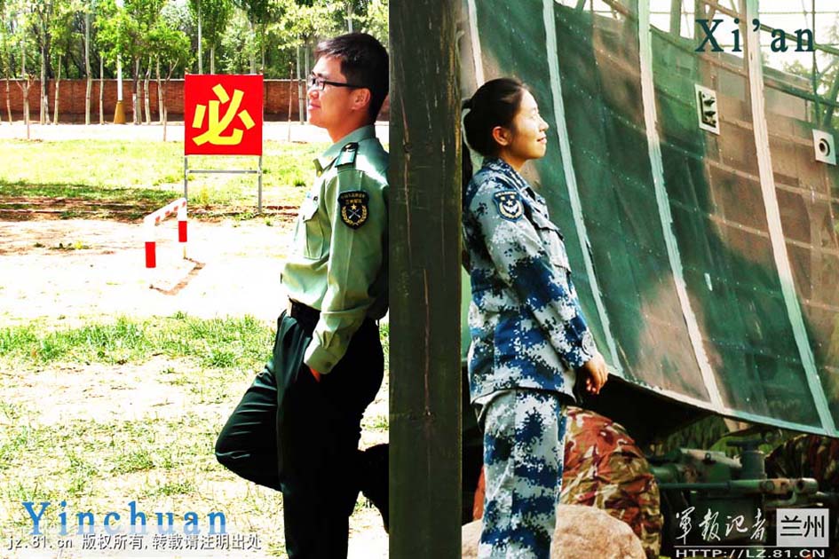 Cui Hao and his girlfriend Zhou Qian are soldiers in different military units. The long distance hasn't changed their love. They share their love and life through a group of combined photos. (Photo/jz.81.cn)