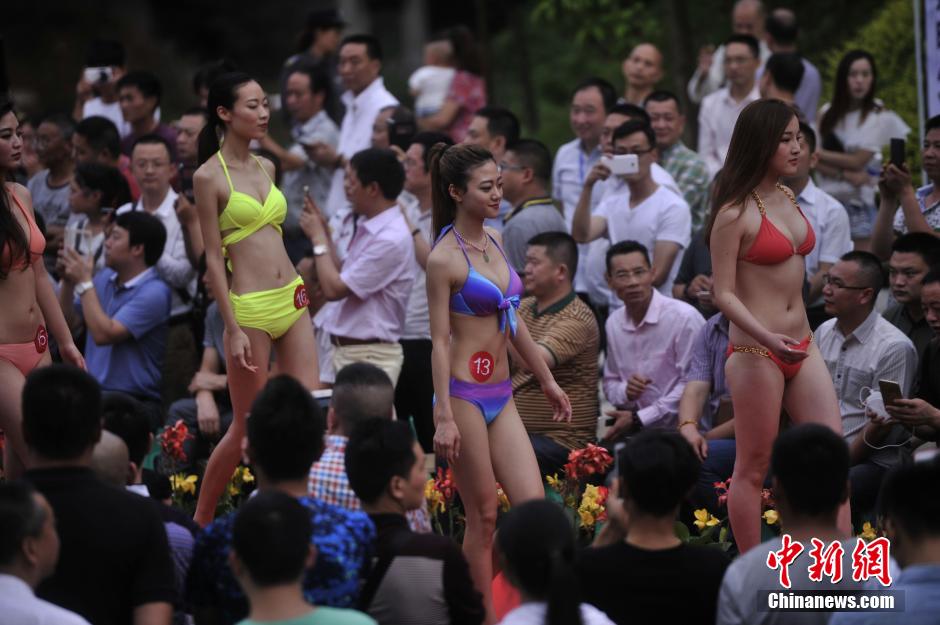 Charming contestants attend the swimsuit competition in a model contest in southwest China’s Chongqing on May 24, 2015. (Chinanews/Chen Chao)