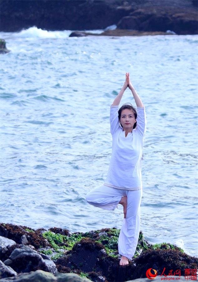 The photo shows a woman practicing yoga on the Yushan Island, near Ningbo, east China's Zhejiang province. Yushan Isand has abundant fish, shellfish and algae resources.(Photo/people.cn)