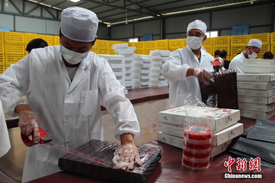 Located in Fuping county of northwest China’s Shaanxi province, Dangjiagou village has more than 800 households, among which over 500 households live on making dried persimmon. Their products were not selling well in the past. In 2009, the villagers opened the first online store, which changed their lives. In 2014, the dried persimmon output of the village reached 400 tons with production value of 1.6 million yuan. 75 percent of their products are sold on internet. Their dried persimmons have been exported to South Korean, Japan and many other countries. Now, Fuping county has nearly 30 e-commerce enterprises and over 800 online-stores. (Chinanews/A Linna) |