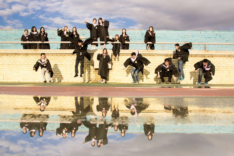 Students pose for creative graduation photos in Liaoning University