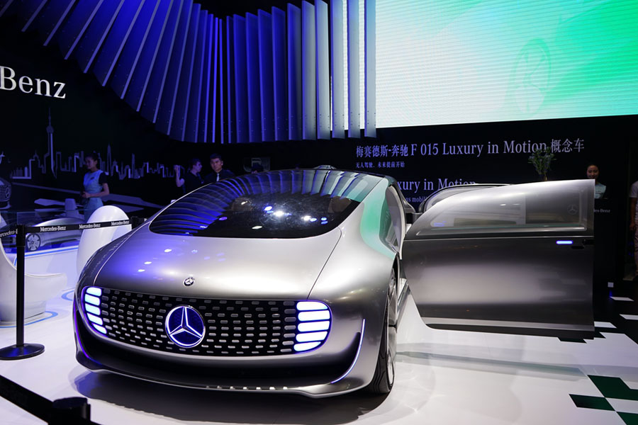 On Monday, a number of top-notch automakers displayed their "Internet Plus" products at the 2015 International CES Asia in Shanghai. "Internet Plus" refers to the integration of the Internet and traditional industries through online platforms and IT technology.(Photo/People.cn)