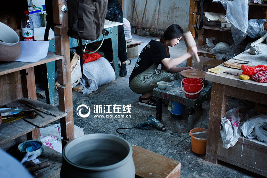 Jiang Yan, born in the 1990s, is a senior at the department of ceramics and crafts, China Academy of Art. In the period before graduation, she devoted considerable time and efforts to making pottery.(Photo/zjol.com.cn)