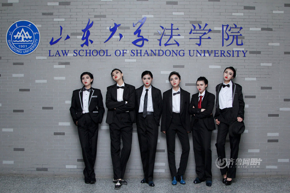 Girls of Law School of Shandong University in east China’s Shandong province take a group of unisex style graduation photos themed with “legal beauties”. (Photo source: iqilu.com)