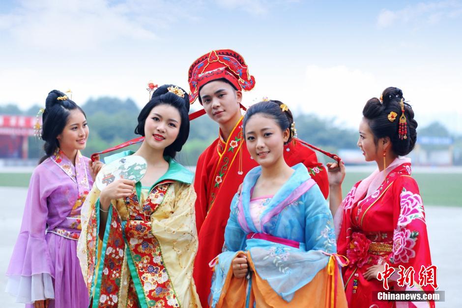 Upon graduation, eight students from Chengdu East Star Airlines Travel College take creative photos to celebrate their colorful university life. These students have been recruited as flight attendants.(Photo/Chinanews.com)