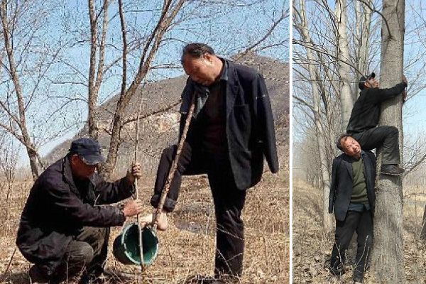 Since 2002, they have planted more than 10,000 trees in Yeli village of Jingxing county, turning the land covered by rocks and weeds into forest.