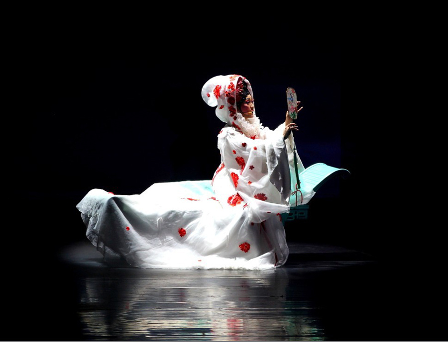 Cross-dressing artist Li Yugang performs on stage. Photo provided to China Daily
