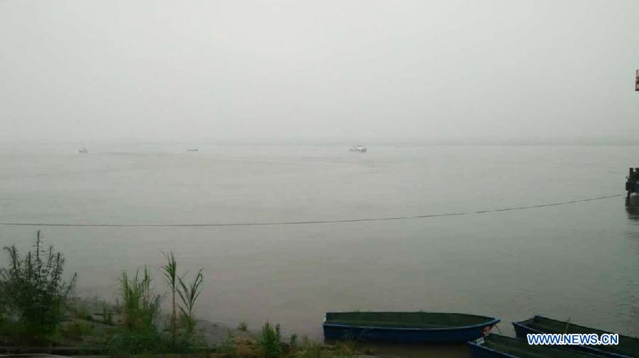 Photo taken on June 2, 2015 shows the ship sinking site in the Jianli section of the Yangtze River in central China's Hubei Province. A passenger ship carrying 458 people sunk Monday night in the Yangtze River, China's longest. Rescue work is hampered by strong wind and heavy rain. (Xinhua)
