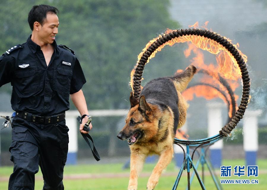 Guizhou Public Security Department held open day activities in their police dog base in Guiyang, southwest China's Guizhou province on May 17, 2015. Local residents were invited to pay a visit to the base on the open day with their children.