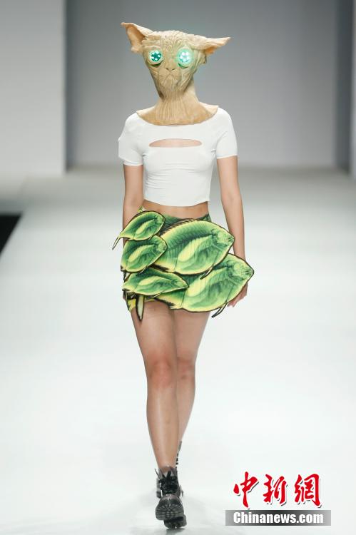 Models show newly designed clothes by graduates from Academy of Arts & Design, Tsinghua University & NABA on T-stage on May 18, 2015. The theme of this graduation works presentation is "15/16". The designers applied new materials and new crafts in designing the clothes. (CNS/Sheng Jiapeng)