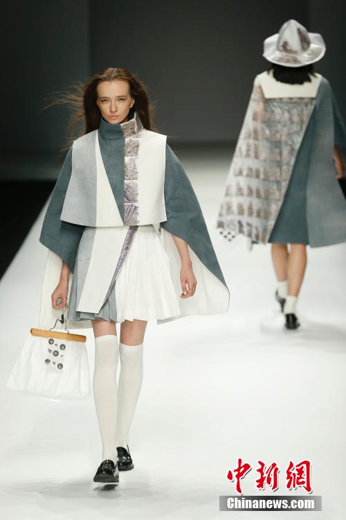 Models show newly designed clothes by graduates from Academy of Arts & Design, Tsinghua University & NABA on T-stage on May 18, 2015. The theme of this graduation works presentation is "15/16". The designers applied new materials and new crafts in designing the clothes. (CNS/Sheng Jiapeng) |