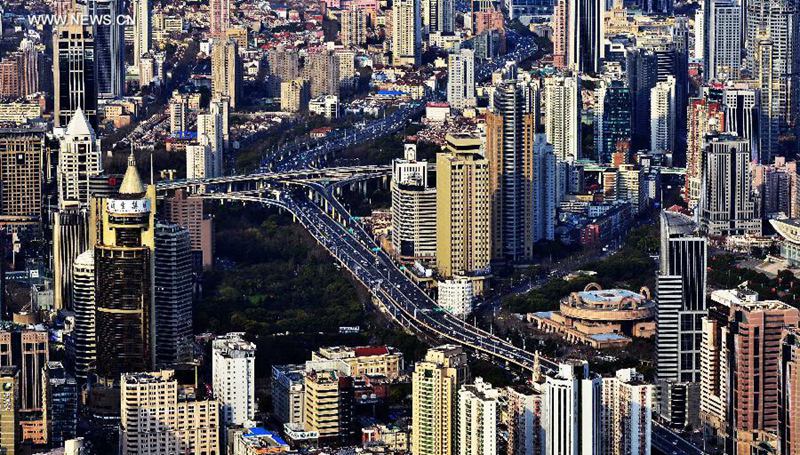Photo taken from Shanghai Tower on March 24, 2015 shows a view of downtown Shanghai, east China. Shanghai Tower, a megamall skyscraper under construction, stands approximately 632 meters high and has 128 stories, with a total floor area of 380,000 square meters. It's projected to open to the public in mid-2015. (Xinhua/Huang Weiguo)