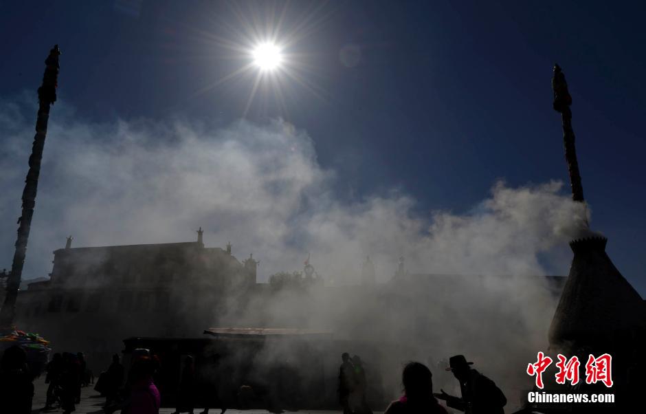 Large number of Buddhists come to Tibet during Tibetan traditional Festival “Saga Dawa” in April of the Tibetan calendar. Most of them walked along three roads in Lhasa while turning the prayer wheels. The festival commemorates the birth, enlightenment, and death of Gautama Buddha. (Chinanews.com/Li Lin) |