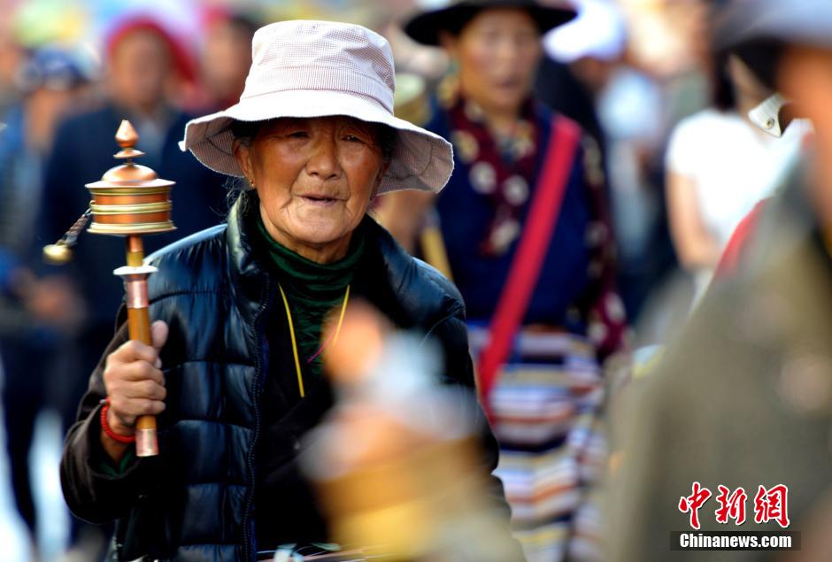 Large number of Buddhists come to Tibet during Tibetan traditional Festival “Saga Dawa” in April of the Tibetan calendar. Most of them walked along three roads in Lhasa while turning the prayer wheels. The festival commemorates the birth, enlightenment, and death of Gautama Buddha. (Chinanews.com/Li Lin)