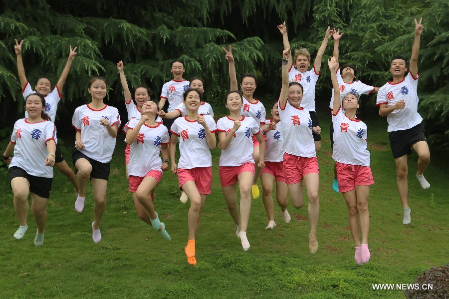 Graduates of the dance troupe at University of South China pose for a graduation photo in Hengyang, central China's Hunan Province, May 19, 2015. As the graduation season comes, graduates are busy with taking creative graduation photos at campuses. (Xinhua/Cao Zhengping) |