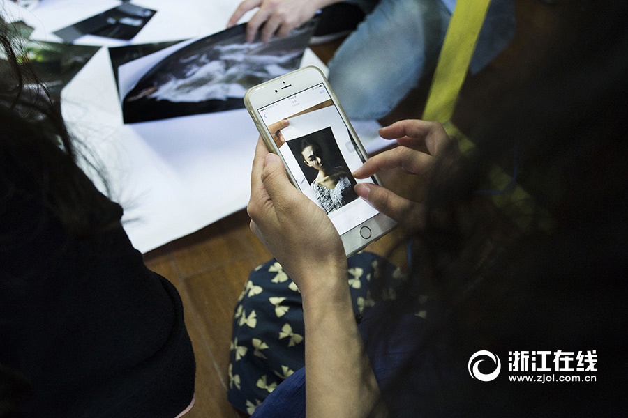 Mei looks at the picture of her design carefully. (Photo source: zjol.com.cn)