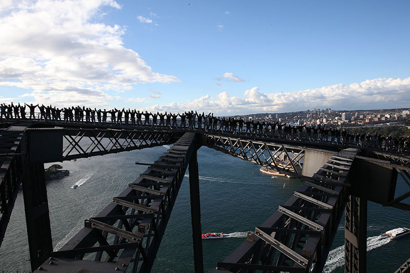 SYDNEY, June 2 – 130 Chinese and Australian young innovators ascend the summit of the Australian landmark - Sydney Harbor Bridge on Monday, for launch event of China Australia Millennial Project (CAMP).