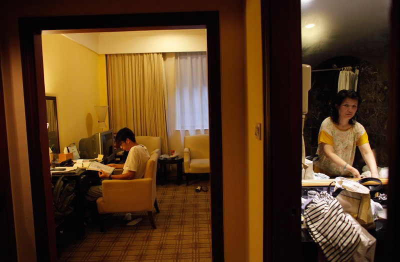 Student Zheng Dong prepares for gaokao in a hotel near the examination location. (Photo/Haiwainet.cn)