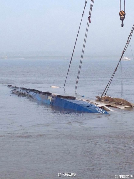 Part of capsized ship in central China rolled above water
