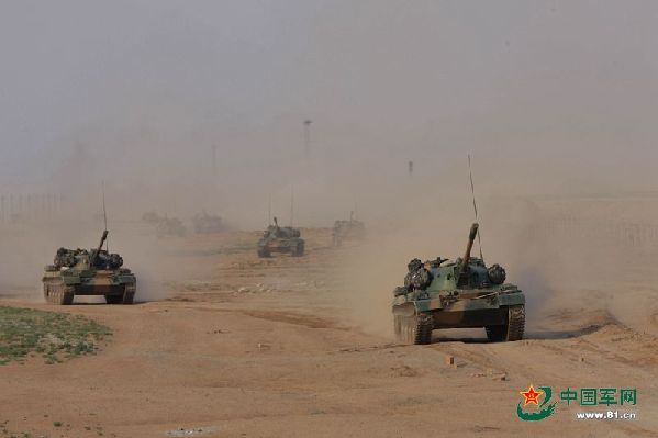The troops participating in the drill maneuver on their way to the Zhurihe training base in North China's Inner Mongolia Autonomous Region. (CNS Photo)