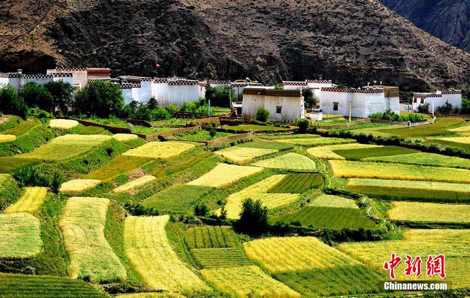 The photo taken on June 4, 2015 shows charming pastoral scenery in Xiangcheng county, Ganzi Tibetan Autonomous Prefecture, southwest China's Sichuan province. The harvest season of barley has come in this Tibetan county. (CNS/Liu Zhongjun)
