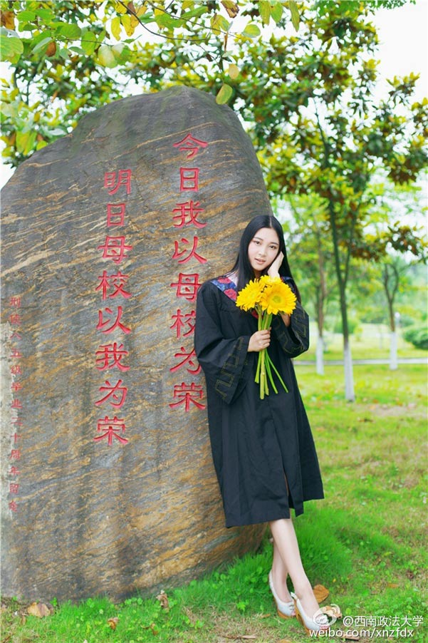 Cheng Qiuyue, campus belle of Southwest University of Political Science and Law in Sichuan province, is an outstanding student. As a law major, she will enter the legal service industry after graduation. (Photo source: Weibo of Southwest University of Political Science and Law)