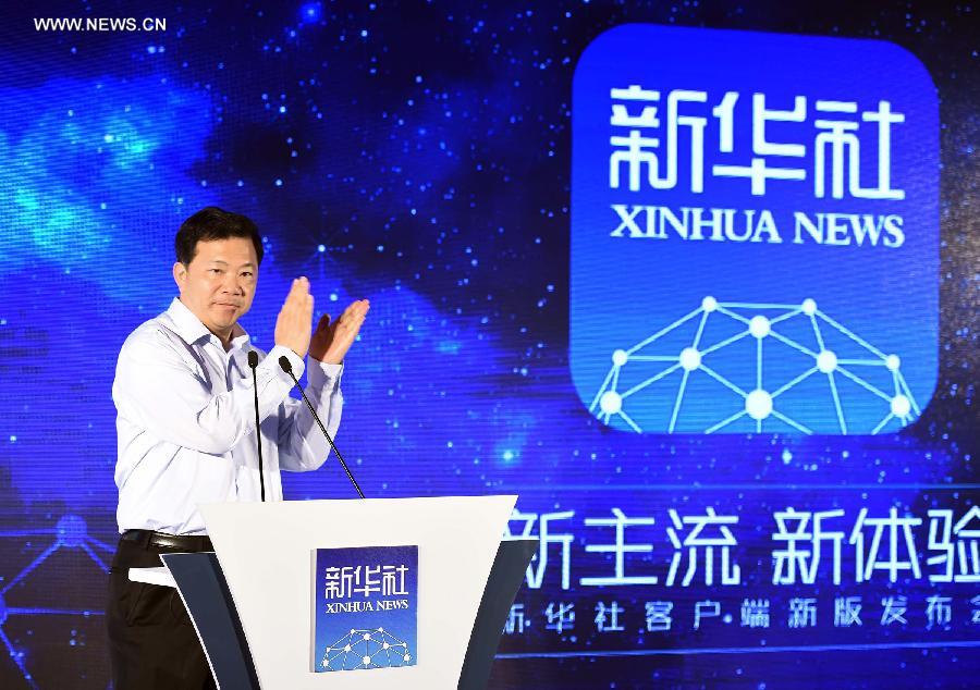 Vice President of Xinhua News Agency Shen Haixiong presides over the launch ceremony of the new version of the mobile news app of Xinhua News Agency in Beijing, capital of China, June 8, 2015. Xinhua News Agency launched on Monday a new version of its Chinese news app, marking a key step in the news agency's efforts to advance the integration between traditional and new media. (Xinhua/Li He) |