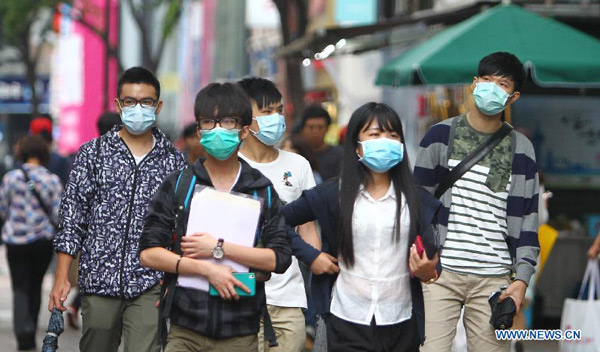 Tourists are seen wearing face masks in Soul, capital of South Korea, June 5, 2015. Public distrust deepened in South Korea over the government's response to the deadly Middle East Respiratory Syndrome (MERS) as the government belatedly broadened countermeasures after a surge in the viral disease spread. (Xinhua/Yao Qilin) |
