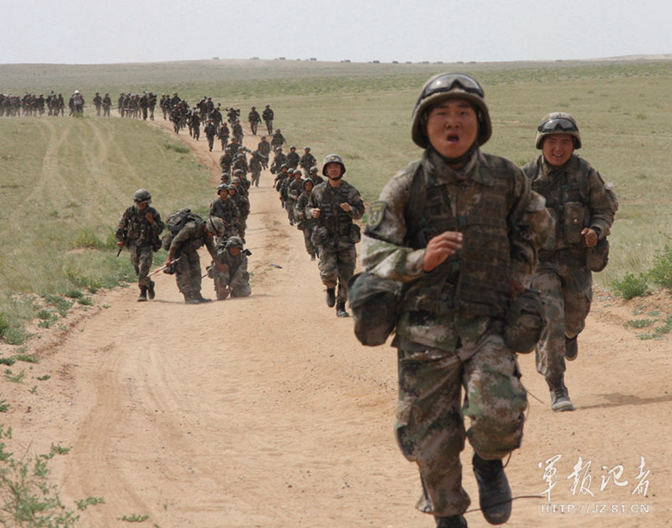 Soldiers with a brigade of the Nanjing Military Region are ordered to complete a long range raid of 10 kilometers within 71 minutes after finishing a 360 kilometer maneuver. The soldiers completed the raid despite difficulties and hardship. (Photo/81.cn) |
