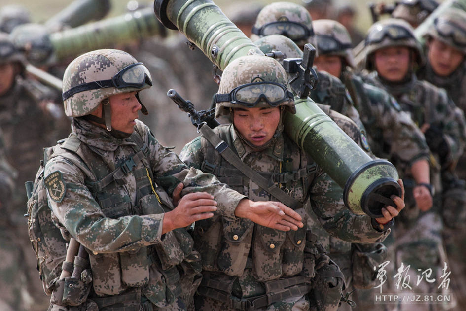 Soldiers with a brigade of the Nanjing Military Region are ordered to complete a long range raid of 10 kilometers within 71 minutes after finishing a 360 kilometer maneuver. The soldiers completed the raid despite difficulties and hardship. (Photo/81.cn)