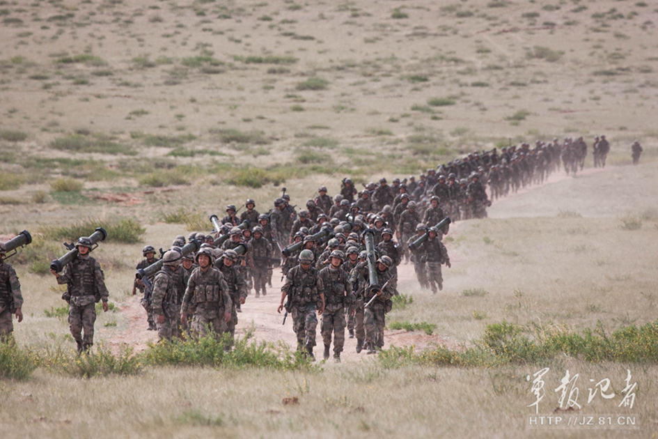 Soldiers with a brigade of the Nanjing Military Region are ordered to complete a long range raid of 10 kilometers within 71 minutes after finishing a 360 kilometer maneuver. The soldiers completed the raid despite difficulties and hardship. (Photo/81.cn)