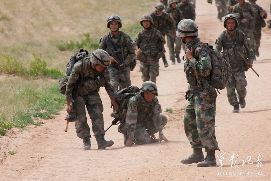 Soldiers with a brigade of the Nanjing Military Region are ordered to complete a long range raid of 10 kilometers within 71 minutes after finishing a 360 kilometer maneuver. The soldiers completed the raid despite difficulties and hardship. (Photo/81.cn)