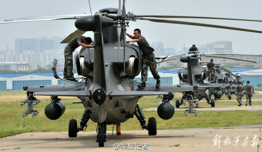 More than ten gunships and heavy-lift helicopters from the PLA 42nd Group Army head towards an airport on May 27, 2015. They arrived at the destination on May 31, 2015 after traveling more than 2,000 kilometers.(Photo/81.cn)
