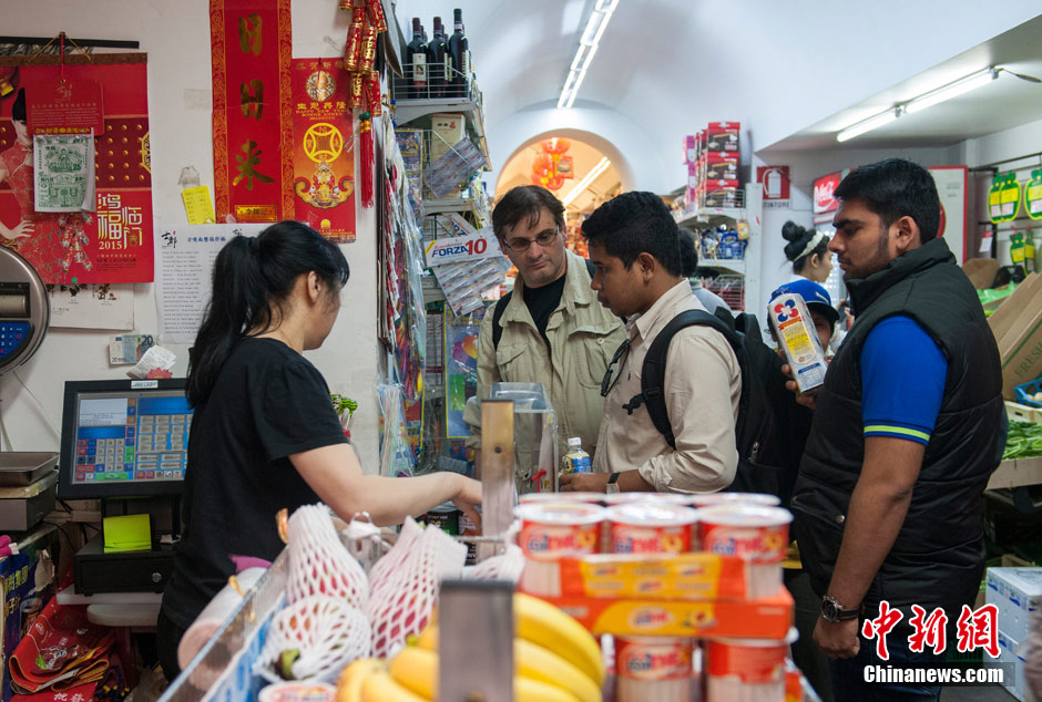 People wait to check out in a supermarket run by a Chinese in Via Paolo Sarpi, Milan, Italy, June 4, 2015. (CNS/Li Qing)