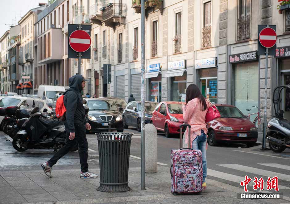 A Chinese girl speaks on the phone at a crossroad in Via Paolo Sarpi, Milan, Italy, June 4, 2015. (CNS/Li Qing)