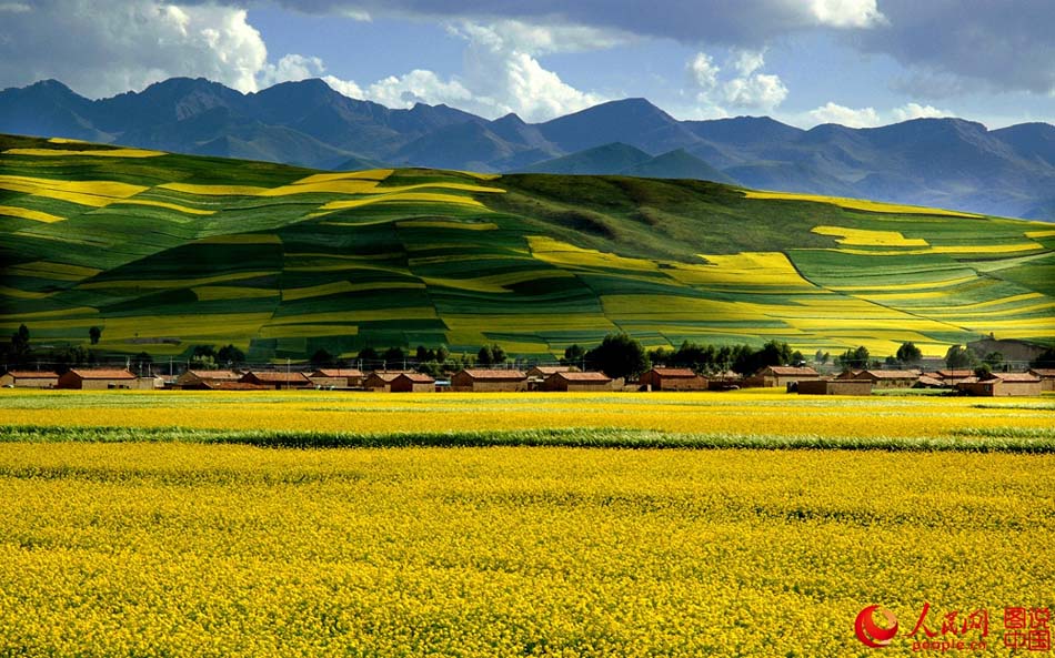 Picturesque scenery of rape flowers in Menyuan Hui Autonomous County, northwest China's Qinghai Province. More than 500,000 mu (about 33,000 hectares) of rape flowers attract many tourists here. (Photp/people.cn)