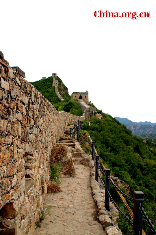 For safety reasons, Simatai Great Wall accepts a limited number of visitors every day. You can book a pass at the Wtown website one day in advance for 40 yuan (US$6.5) or go to the information center at the Wtown to buy a combo ticket for the water town and Simatai for 190 yuan (US$30). (Photo source: China.org.cn/Zhang Yunxing) |